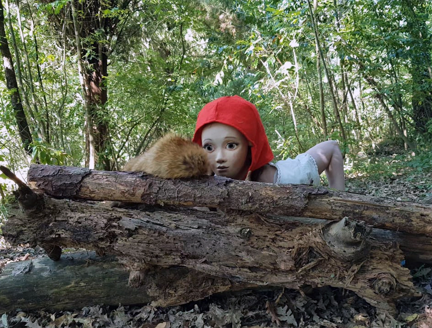Attorno al pubblico immerso nel bosco, si muovono, appaiono e scompaiono i personaggi della faba, dando vita alla famosa storia della bambina e del lupo.