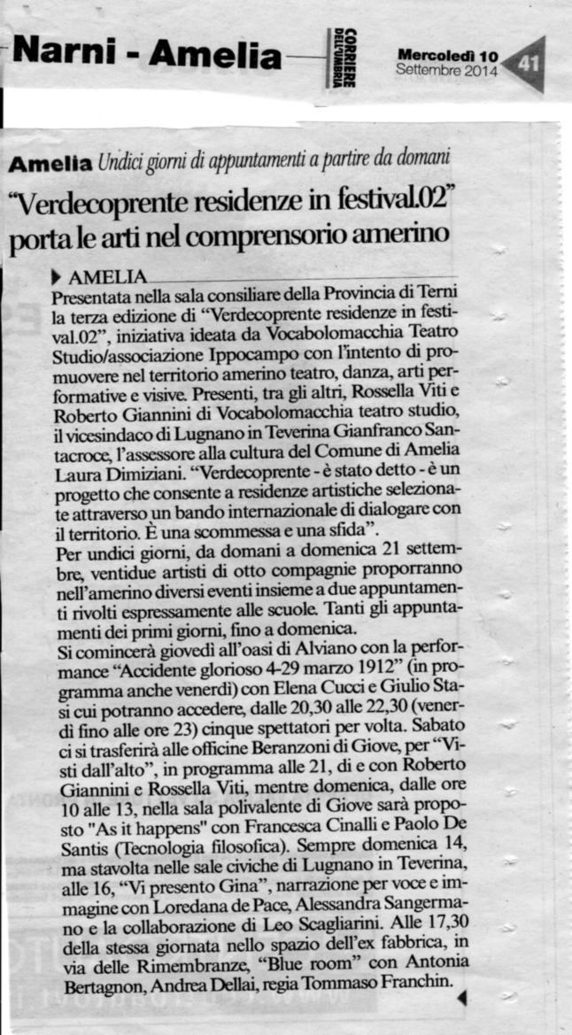 _ Danzaeffebi _ Campadidanza _ Cesvol _ Umbria24 _ Teatron _ OrvietoNews _ TerniZero _ OrvietoNotizie _ UmbriaeCultura _ GeosNews _ NewsTuscia _ TerniLife _ ProvinciaTerni _ OrvietoNotizie _ LeMuseNews _ UmbriaeCultura _ IlTamTam _ UmbriaeCultura _ Cronache24 _ UmbriaLeft _ TerniLife _ UmbriaeCultura _ UmbriaSud _ Comunicato stampa Provincia Terni _ NewTuscia _ Terni in Rete _ PortaleItaliano _ Art a Part _ RadioIncontroTerni _ OrvietoSi _ UmbriaCronaca _