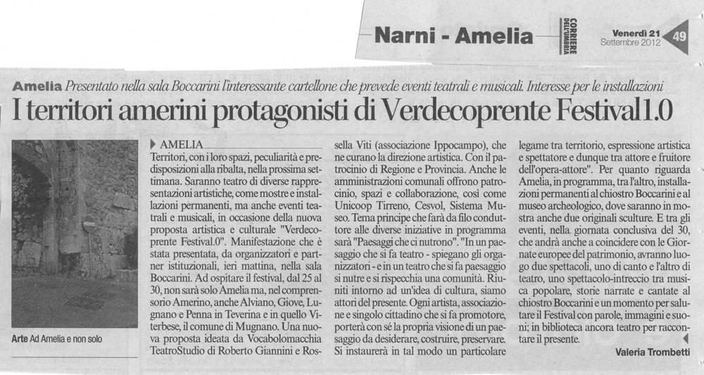 Teatro e Critica – Il Tamburo di Kattrin – 242movietv – Dramma.it – Semisolid – Ministero Beni Attività Culturali – Un Faro per Venezia – ZOES zona equosostenibile – Gigarte – I viaggi nella storia – Arte.it – Cesvol – Krapp’s last post – Regione Umbria – Undo.Net – Comunicare il Sociale – PaperBlog – Magdalena Project – Umbria Left – Cronache 24